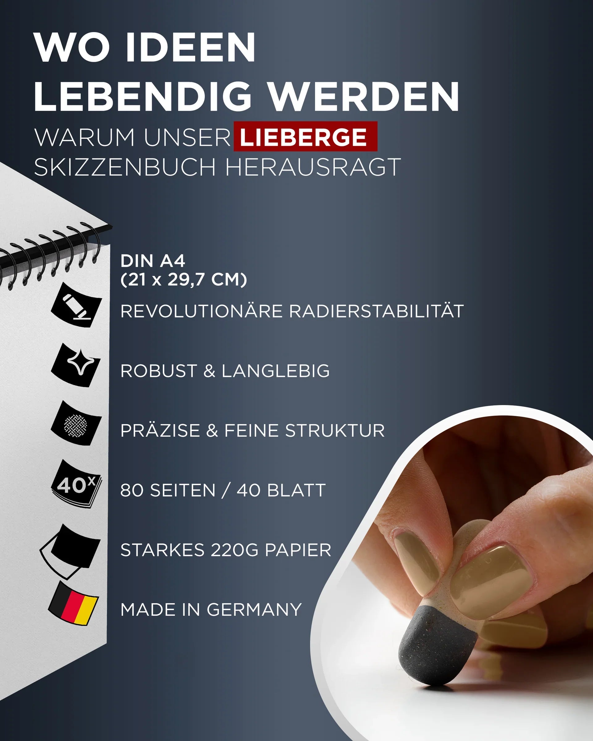 LIEBERGE Skizzenbuch A4 (220g, 40 Blatt)