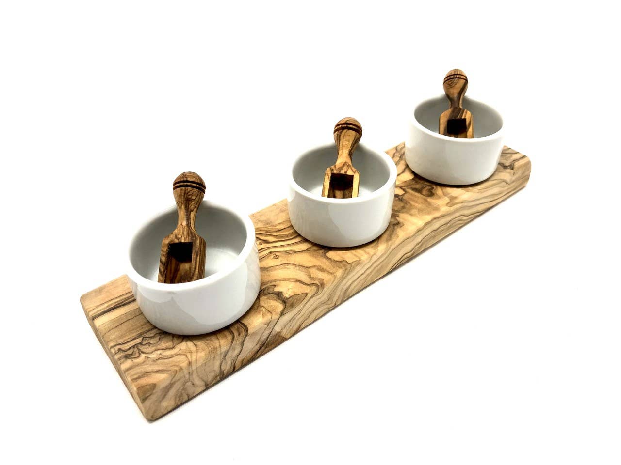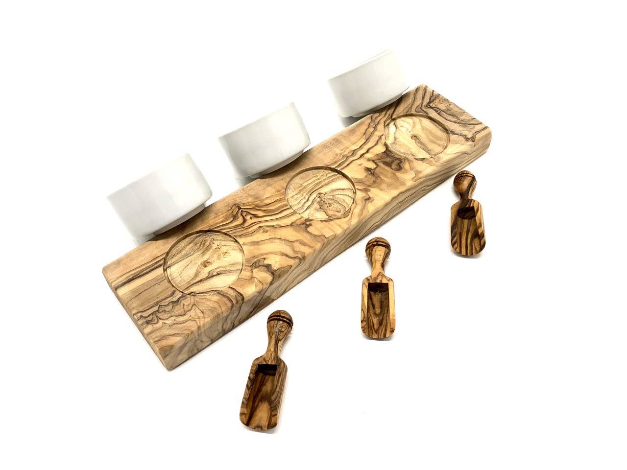 3er-Set Salzschälchen mit Salzschippchen – Handgefertigt aus Olivenholz