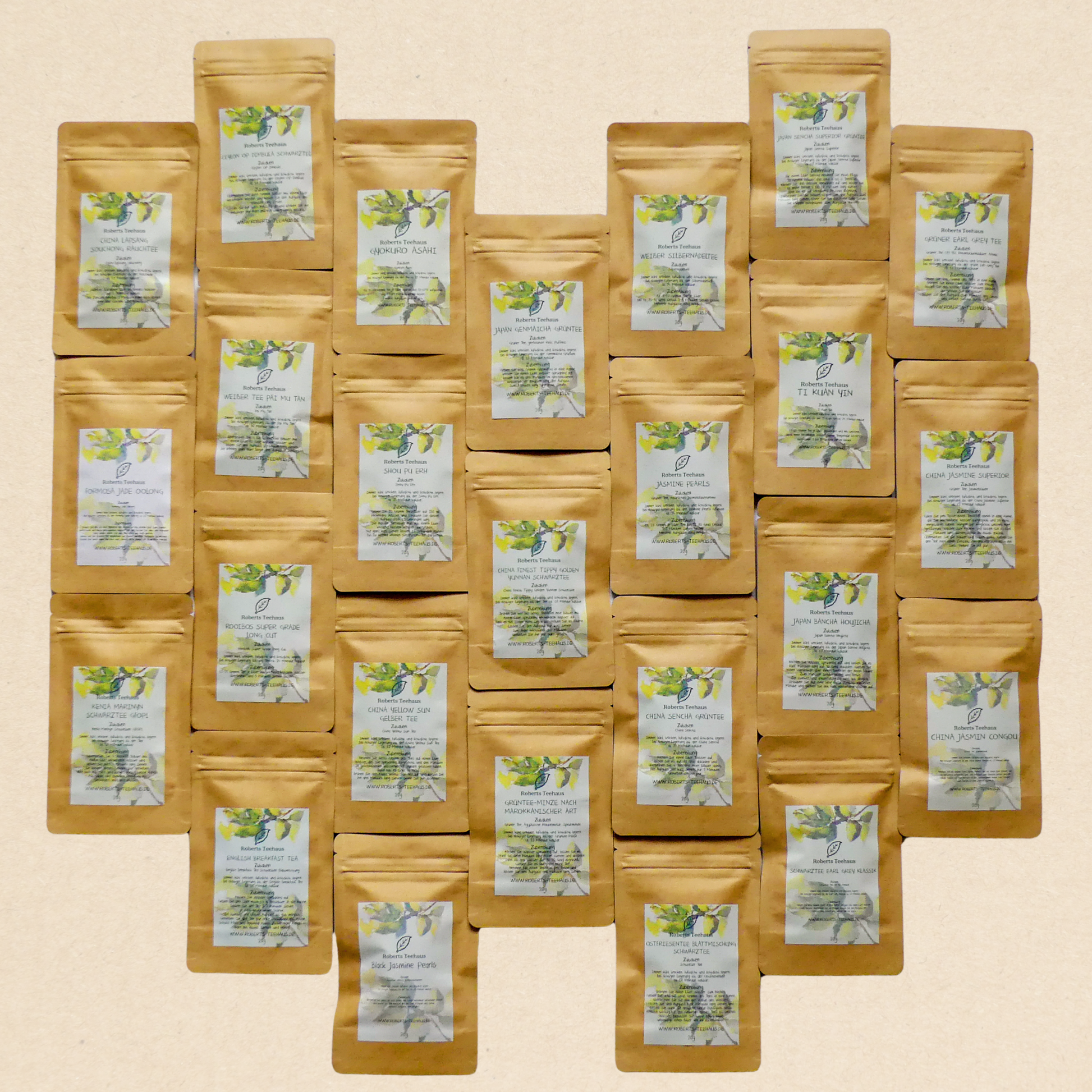 Probierpaket: Von jeder der 25 angebotenen Teesorten 20 Gramm